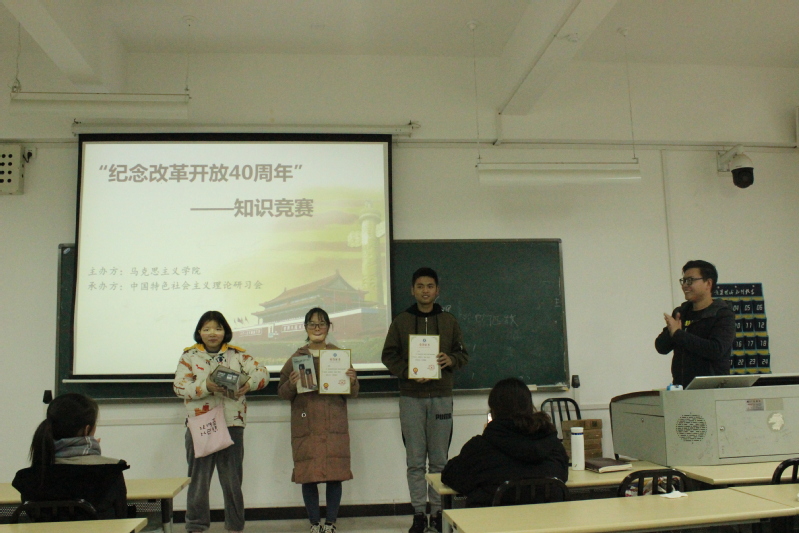 12月10日中午12:30,在北4-208教室,各学院特研会分会推荐的参赛选手们拿起手机扫描答题二维码,争分夺秒开始答题。竞赛题由单选题和多选题组成,涵盖改革开放40周年、党的十九大、习总书记系列重要讲话精神等内容,让同学们了解到更多改革开放相关的知识,认识到改革开放以来国家和社会的巨大改变,充分理解改革开放四十年来中国所取得的举世瞩目的成就,从而转化为努力学习、勇于担当社会责任的积极行动,创造和传播正能量。这次活动意义深远,参赛的同学也受益良多。机电工程与汽车服务学院的王崇等3名同学获得一等奖,竞赛还决出了二等奖、三等奖和优秀奖,获奖同学被授予荣誉证书和精美奖品。