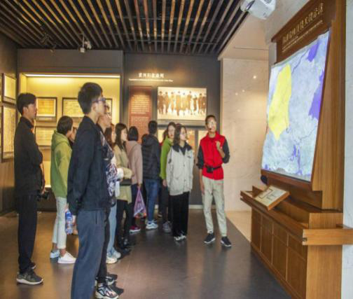 在马克思学院青年教师黄璐、陈静,辅导员侯秋月的带领下,第一站首先来到了雨花台烈士陵园,雨花台烈士陵园是新中国规模最大的纪念性陵园,也是全国爱国主义教育示范基地。兴趣班成员们在这里齐声歌唱《国际歌》,缅怀了曾经用热血和生命守卫美好山河的烈士英雄,感受了那番泥泞坎坷的漫漫前路,聆听了民族英雄奋起抗争的故事,坚定了兴趣班成员们铭记历史,砥砺前行的决心。兴趣班内党员同志们在此庄严宣誓将为共产主义事业奋斗终生。