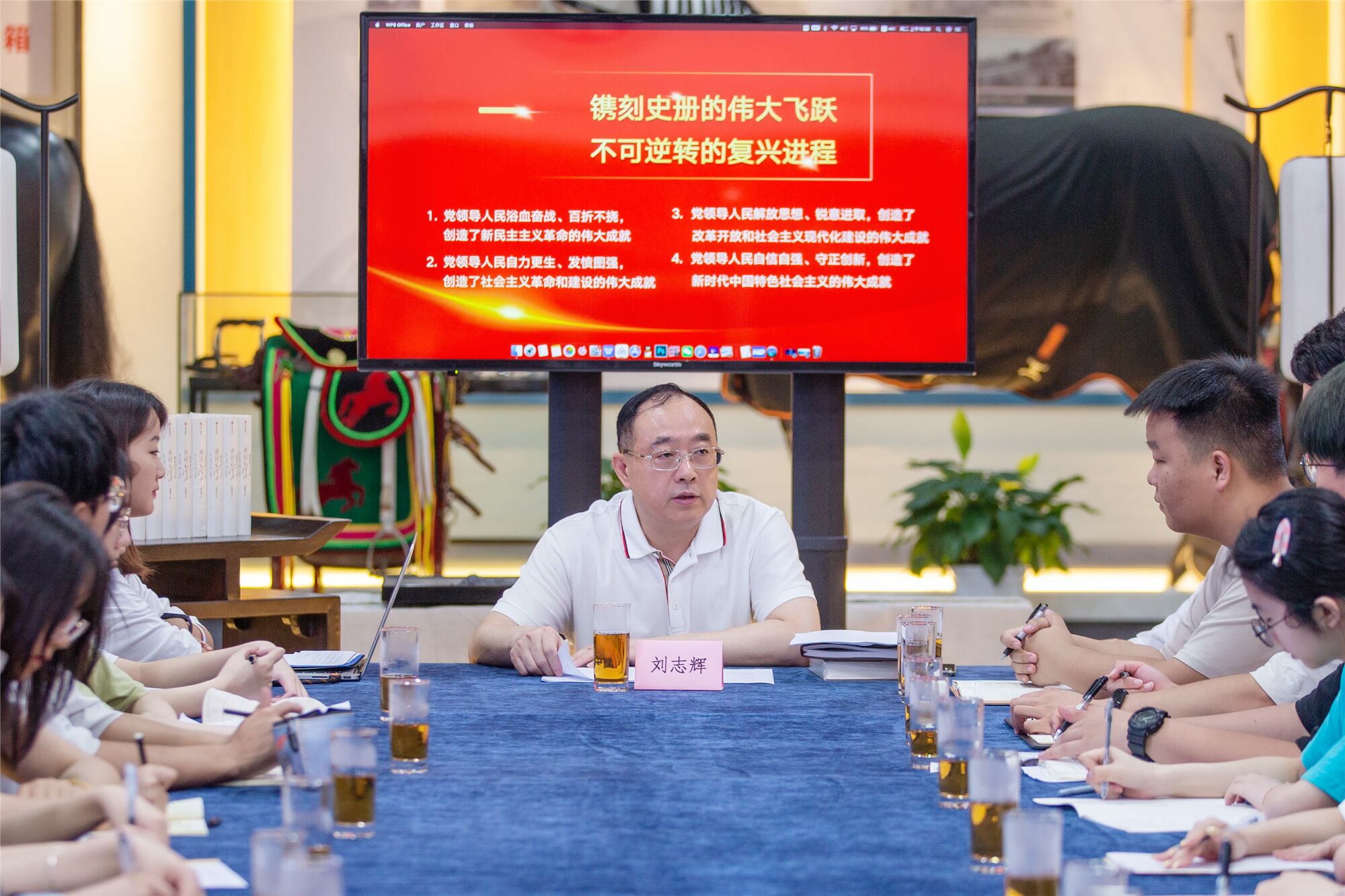 5月31日,党委书记刘志辉在校史馆为经济与金融专业30余名学生讲述题为《百年奋斗谋复兴 勇毅前行兴伟业》的形势与政策课。刘志辉从引导学生思考在党的百年奋斗征程中通过的几个历史决议着重对第三个历史决议《中共中央关于党的百年奋斗重大成就和历史经验的决议》解读。刘志辉表示,党的十九届六中全会审议通过《中共中央关于党的百年奋斗重大成就和历史经验的决议》,深情回顾了波澜壮阔的百年路,浓墨展示气象万千的新时代,深刻总结党百年奋斗的伟大历史意义和宝贵历史经验,向全党发出走好实现第二个百年奋斗目标新的赶考之路的进军号令。刘志辉说,中国共产党自成立以来,始终把为中国人民谋幸福、为中华民族谋复兴作为自己的初心使命,始终坚持共产主义理想和社会主义信念,团结带领全国各族人民为争取民族独立、人民解放和实现国家富强、人民幸福而不懈奋斗。通过详细的讲述,刘志辉为学生们展现中华民族波澜壮阔的史诗画卷,激发学生们的深度共情,增进学生们对中华民族伟大复兴的认同感和自豪感。