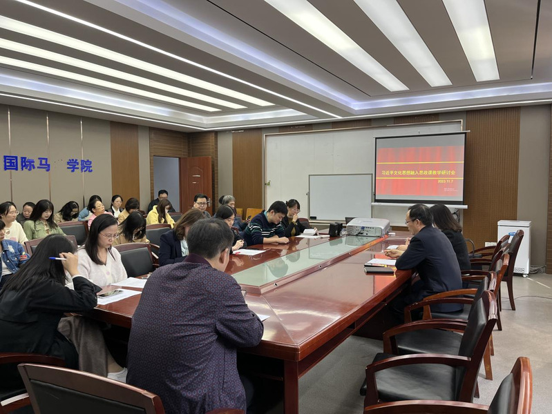 思政课各教学部代表夏艳梅、肖洋、陈蕊、余志涛、王铮、陈翠翠、陈婧等教师结合自己所承担的思政课程,就习近平文化思想生成的实践基础、“两个结合”的理论和现实意义、构建中国特色哲学社会科学、培育和践行社会主义核心价值观、习近平文化思想与教材内容的结合、未来相关科研的选题方向等方面展开了热烈的讨论和深入的交流。